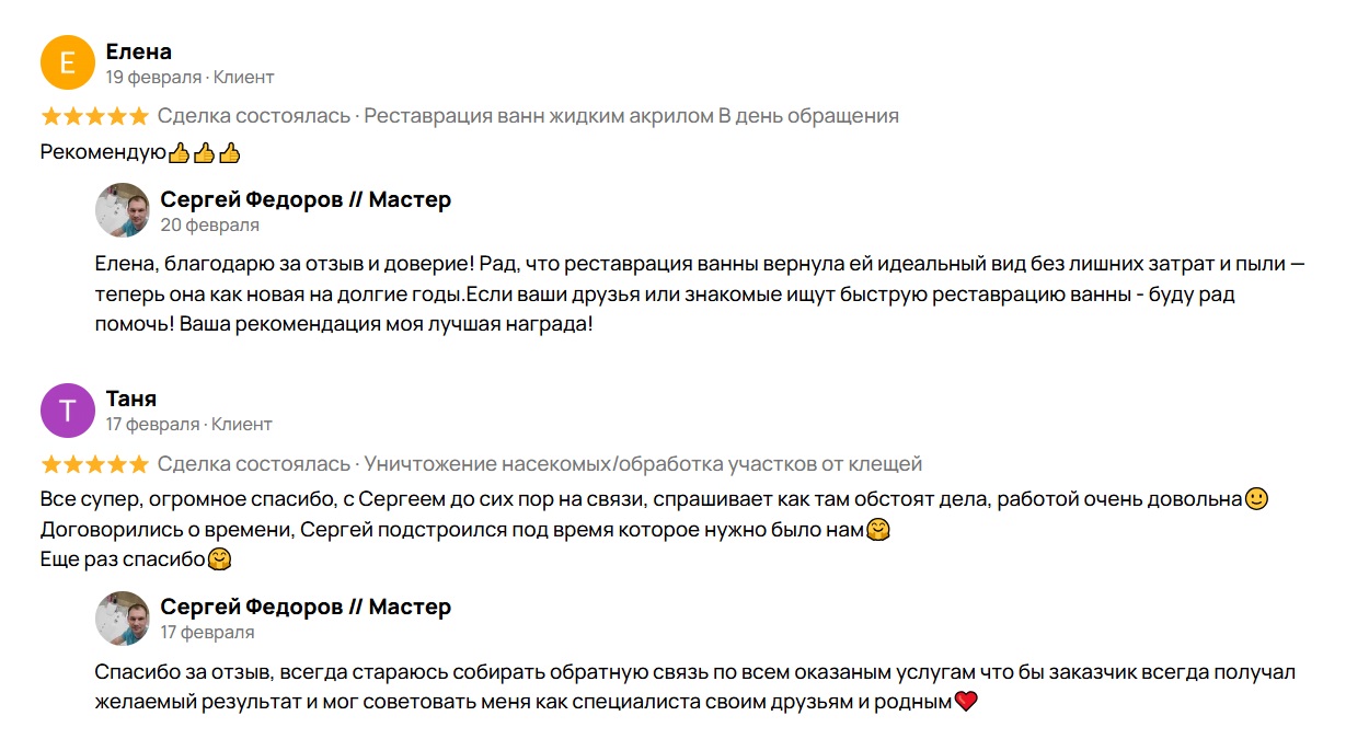 О качестве моих услуг говорят отзывы обо мне (с Авито)